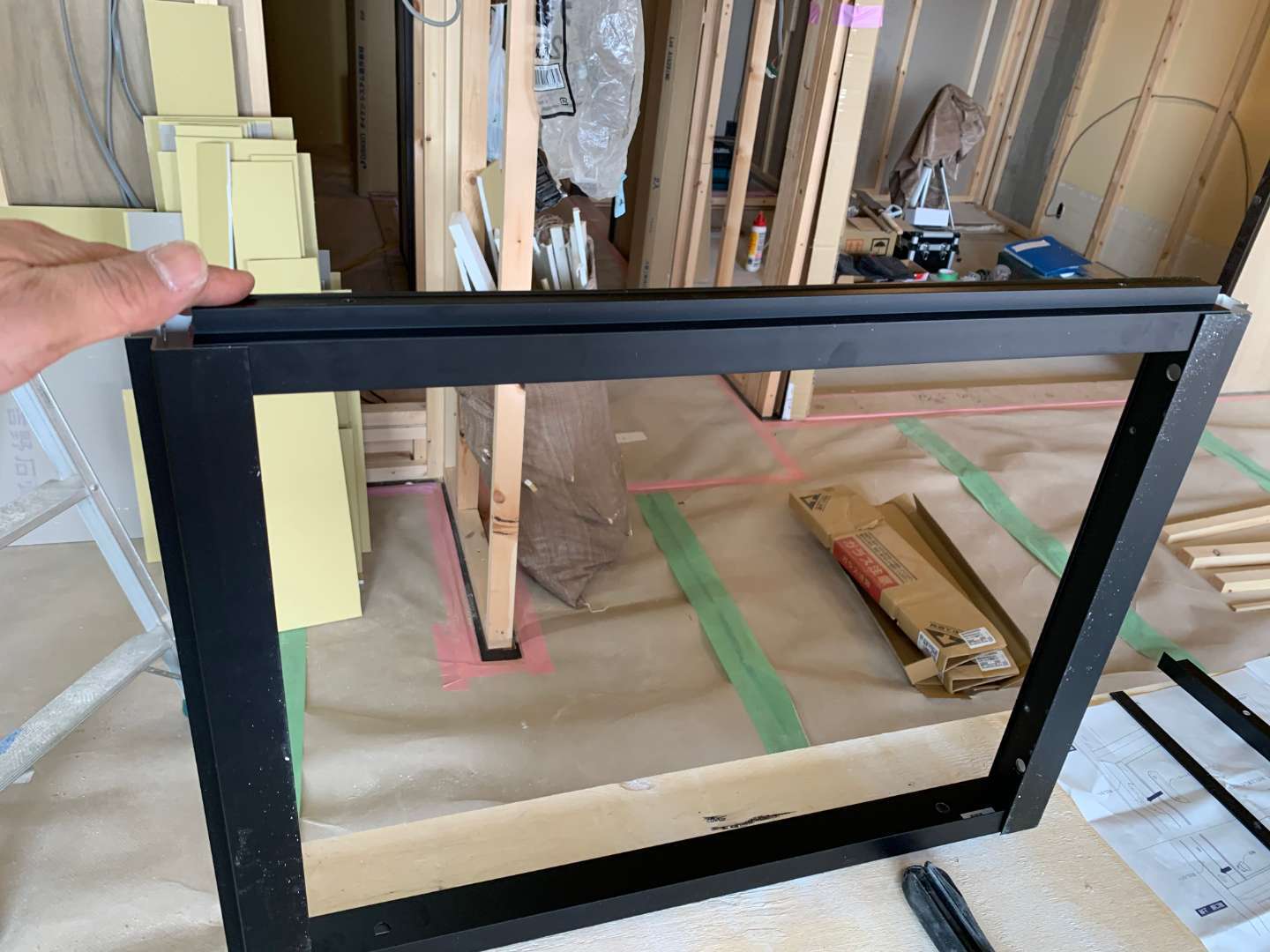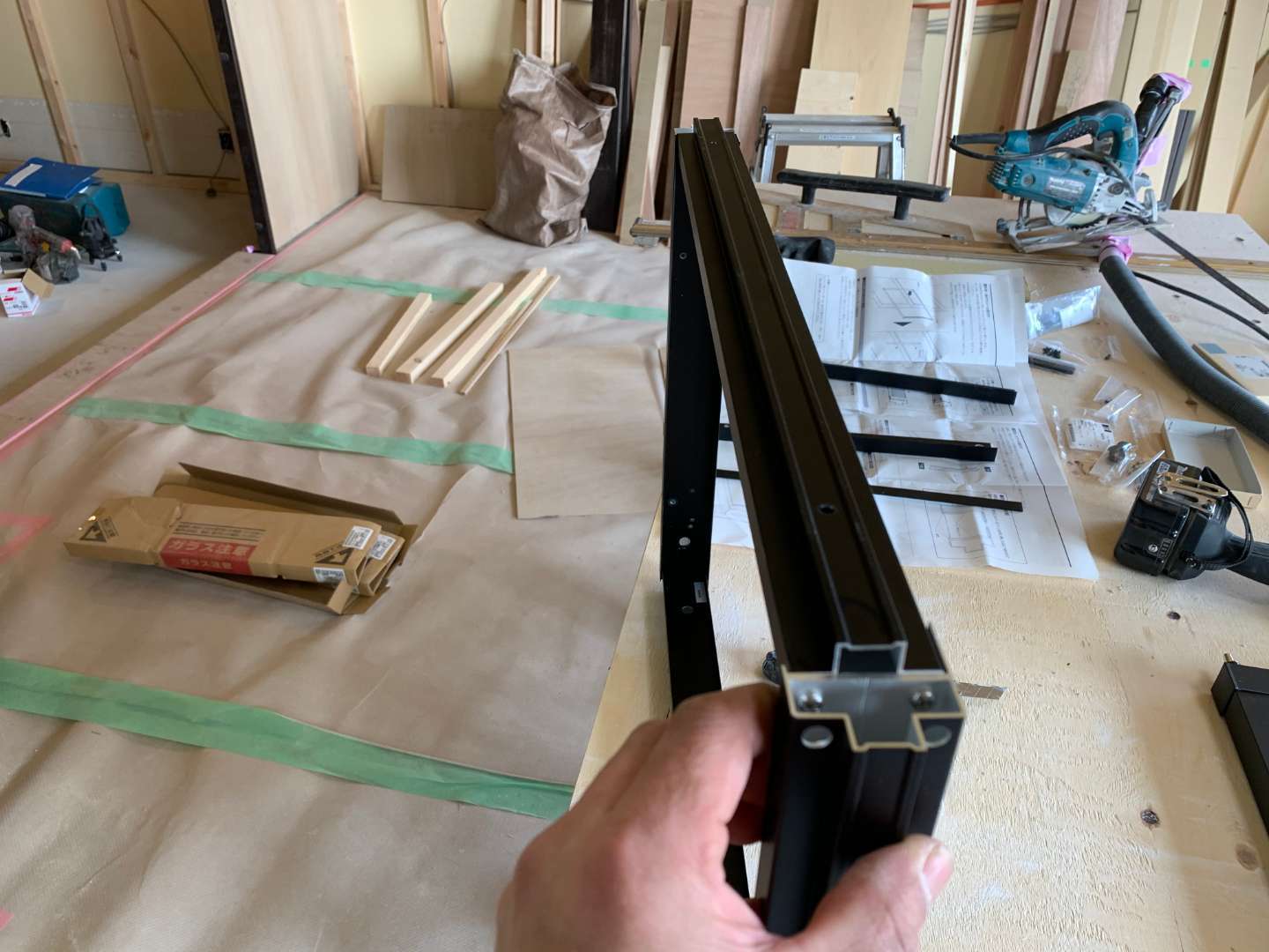 デコ窓と言われている可愛い名前の、室内窓の取付作業中です。