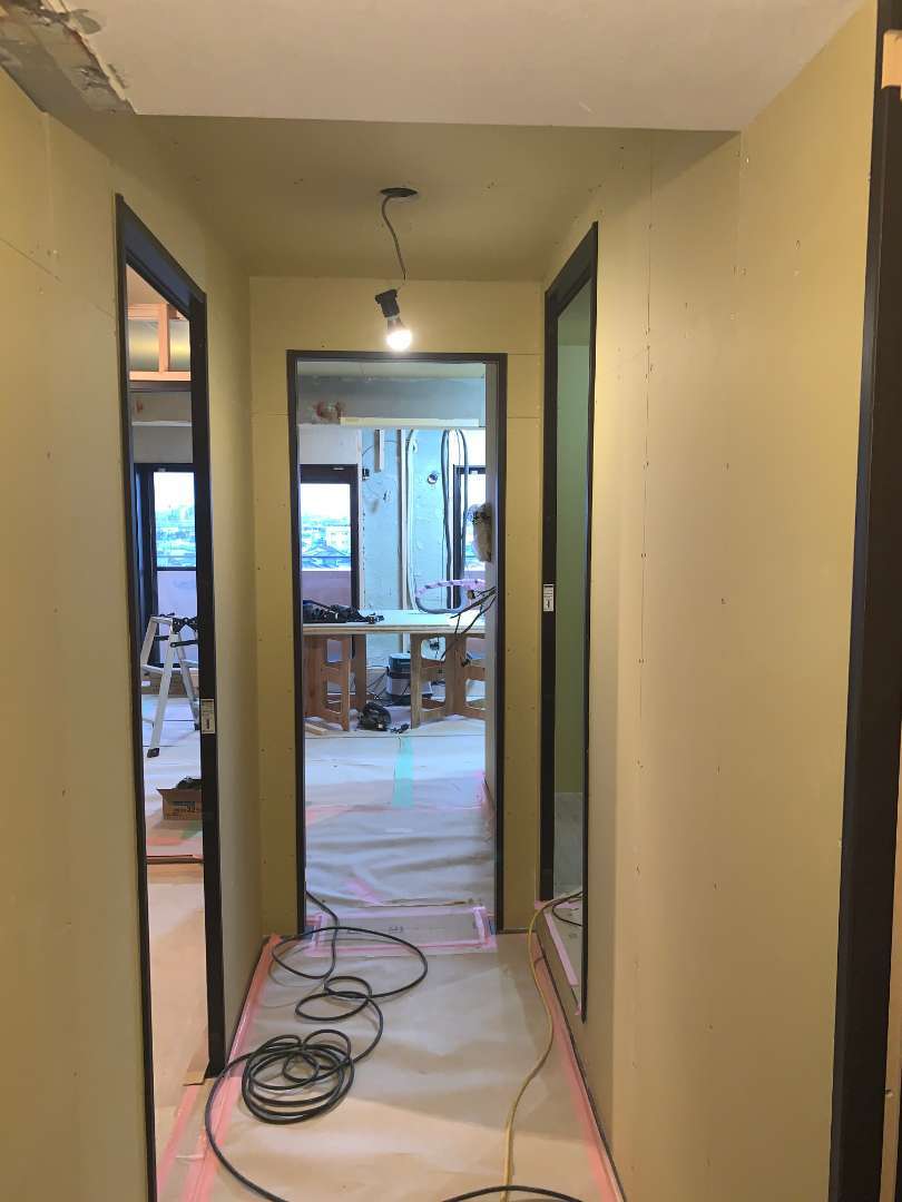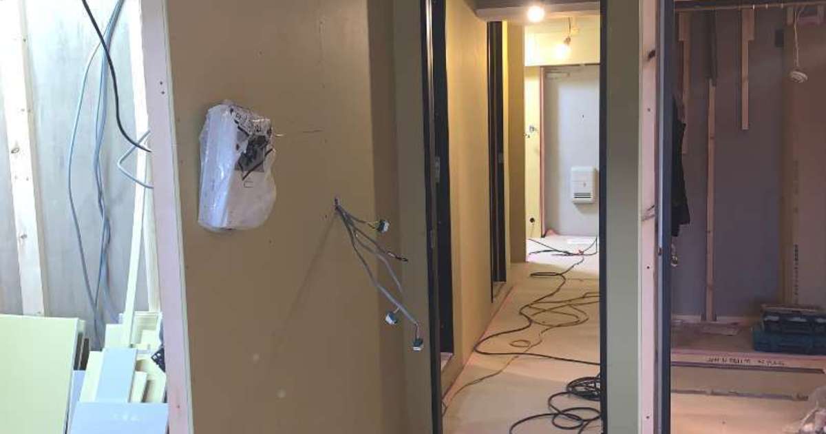 現場施工途中のリビングダイニングになります。 養生シートを剥がすと、ガラリと変わりますね。 ...