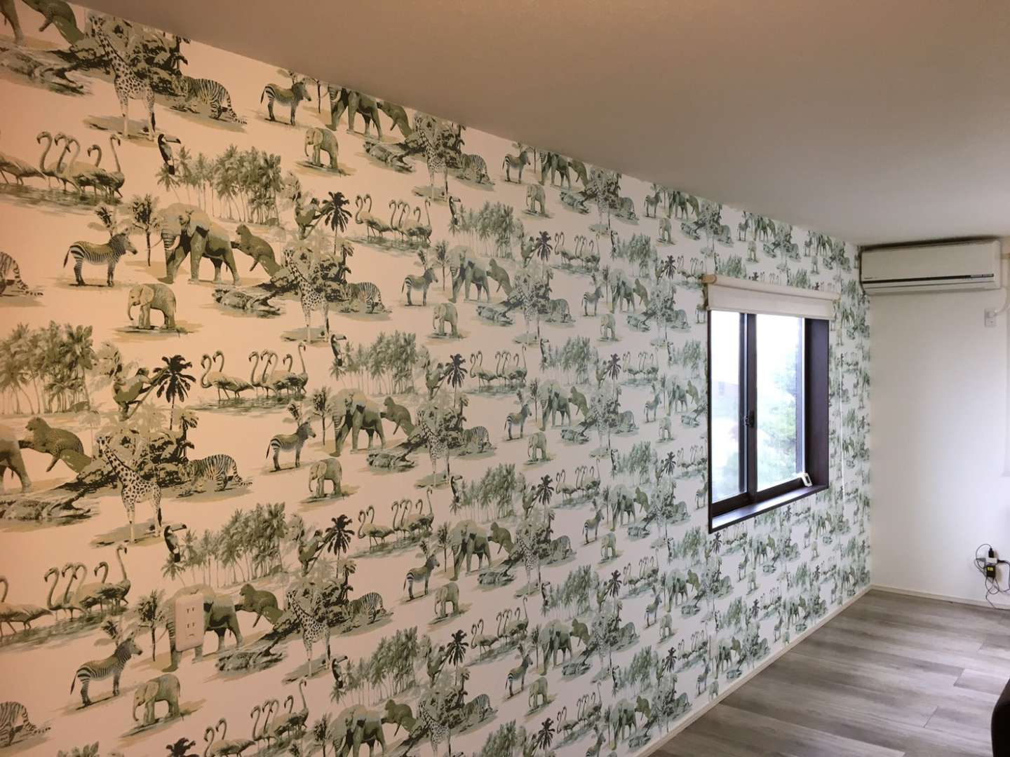 こちらは子供部屋とゆう事で、動物模様を一部分に取り入れました。