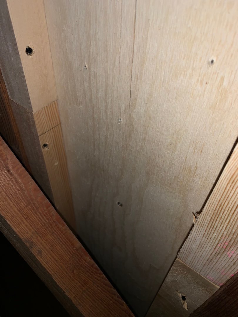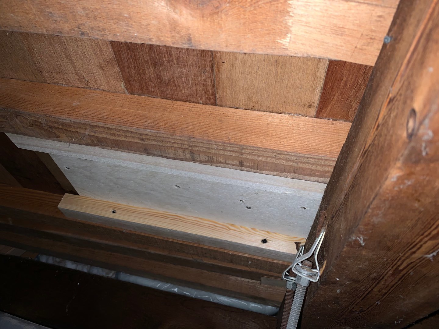 床下にもぐり床がフカフカしている部分を下から補強しています。
