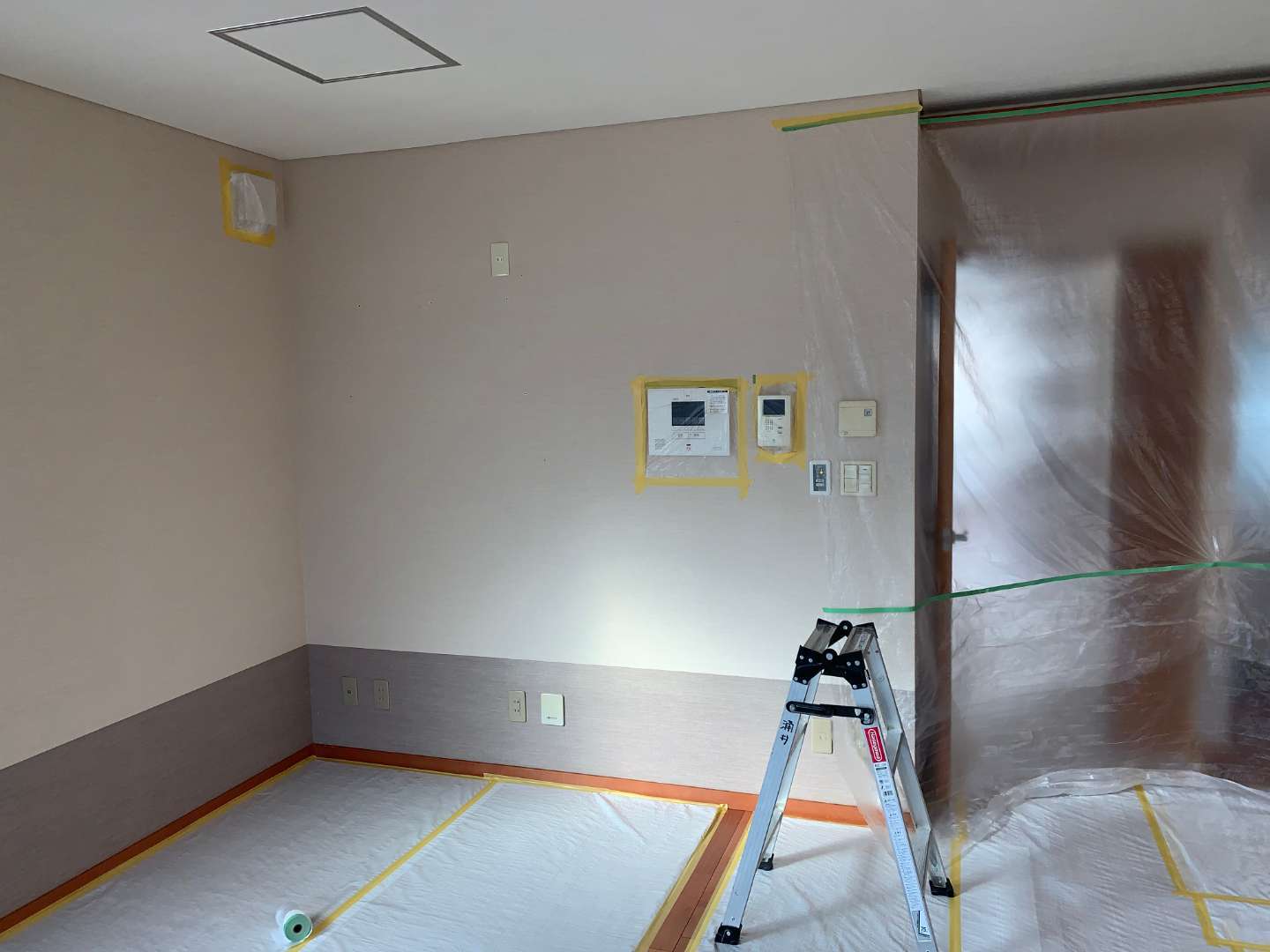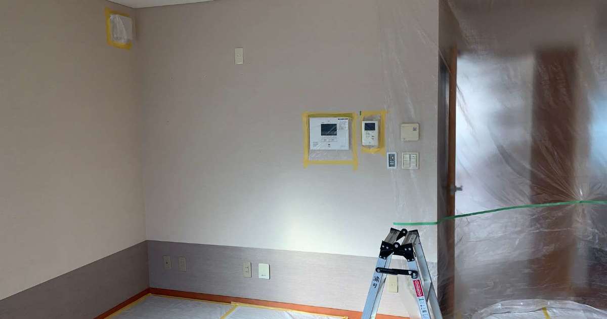 新潟市戸建てのリフォームをしています。 バスルーム キッチン 室内ドア 白を基調とし...