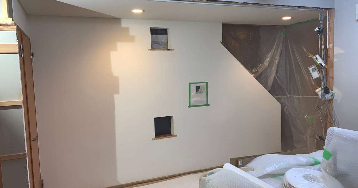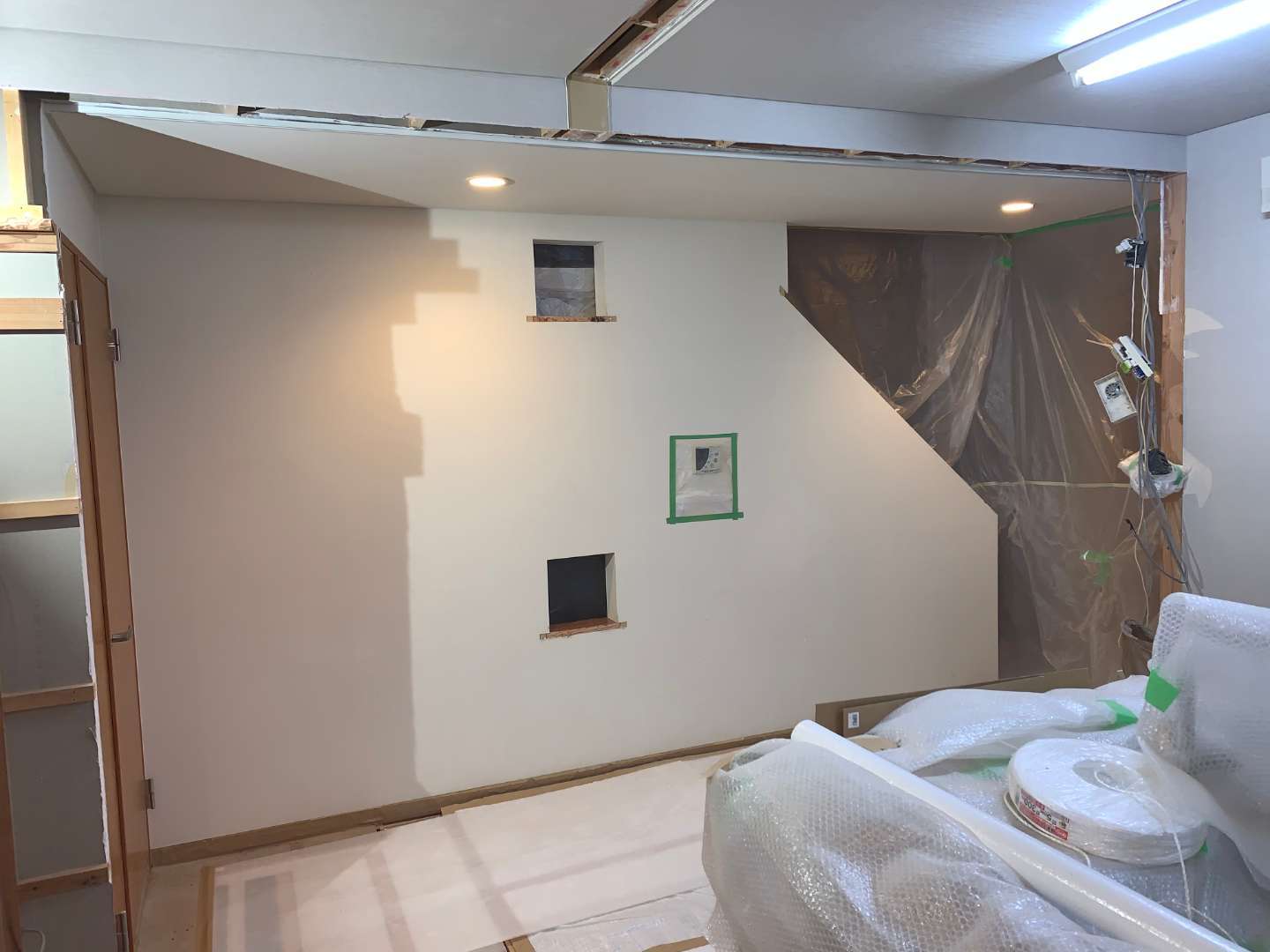 新潟市戸建てのリフォームをしています。 バスルーム キッチン 室内ドア 白を基調とし...