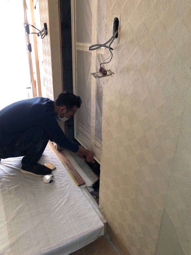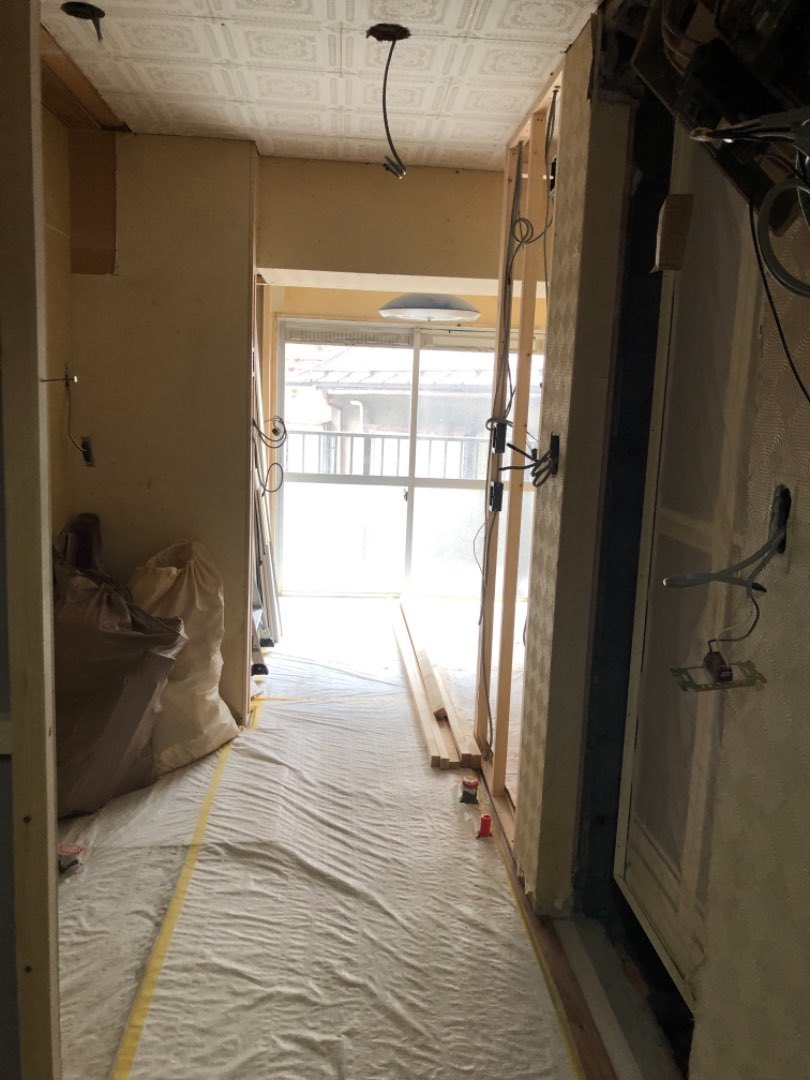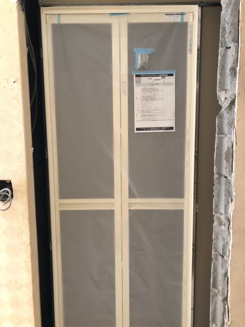 サイズを図り、調整し、まずは新しくユニットバスとドアが入りました!