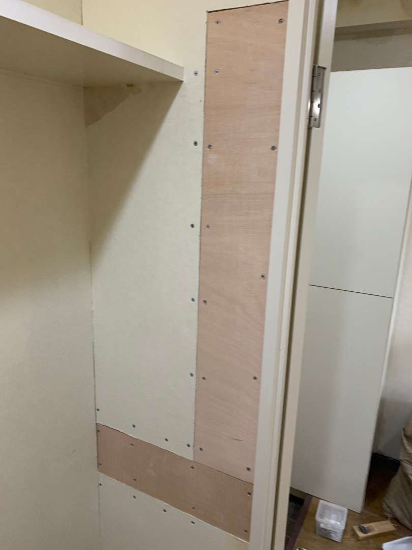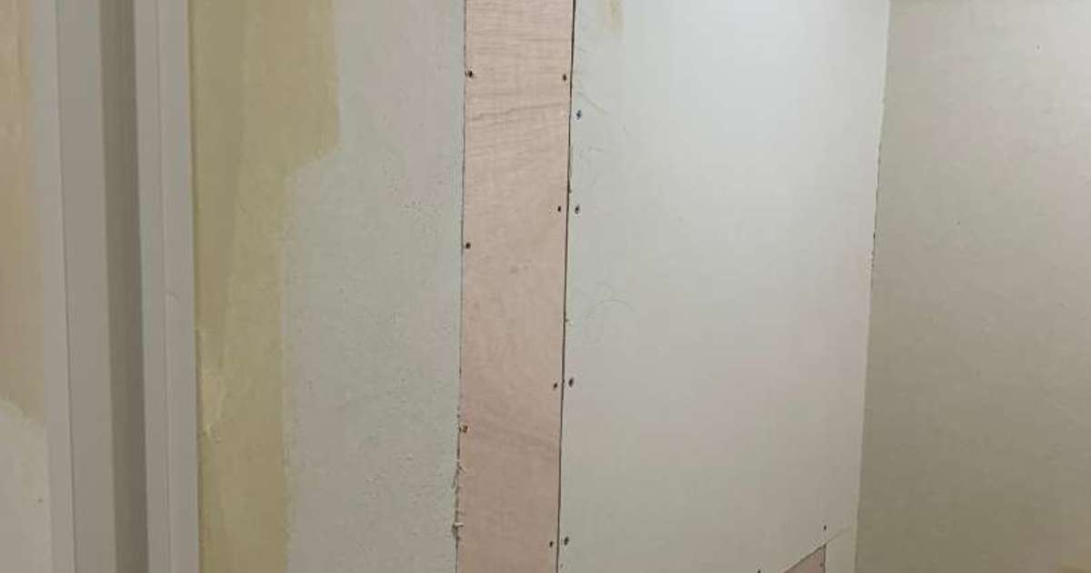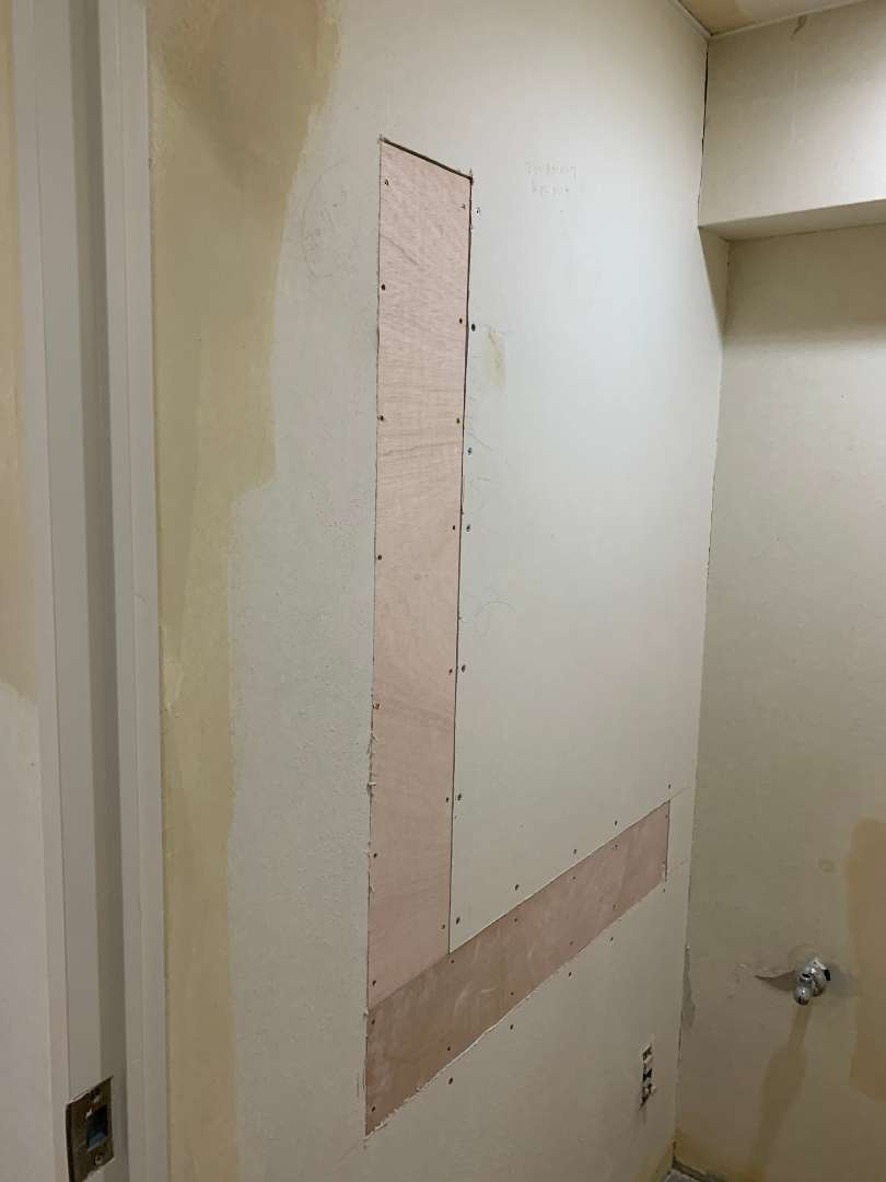 新潟市マンション 手すりを取付ける前の下地、工事をしています。