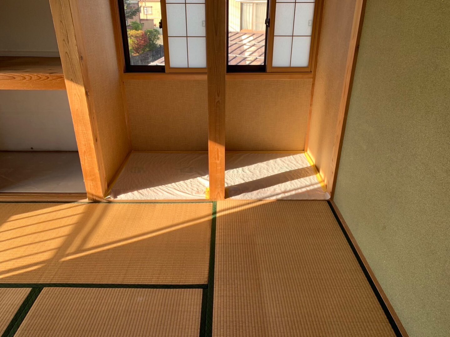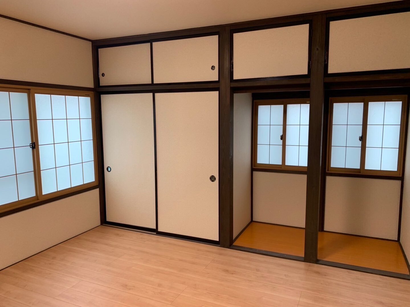 和室の畳をフローリングへ張り替え、壁紙張り替え、柱塗装を施工させていただきました。