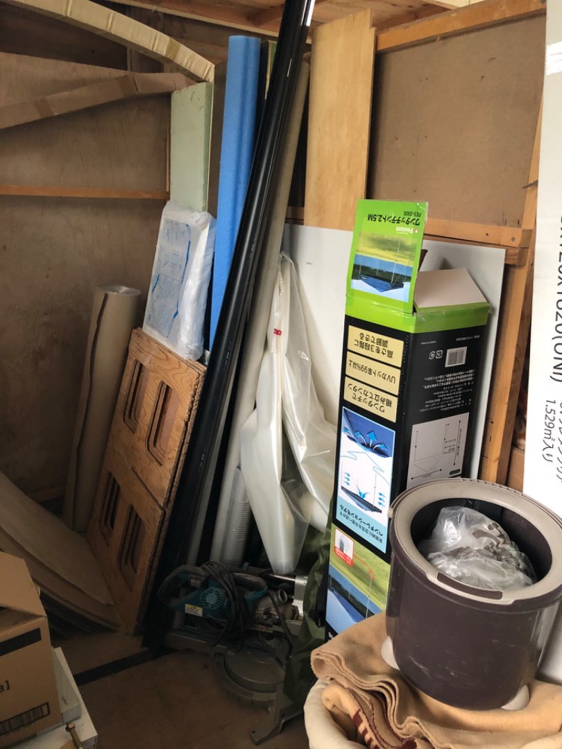 物置き場の整理、作業道具の確認しています。